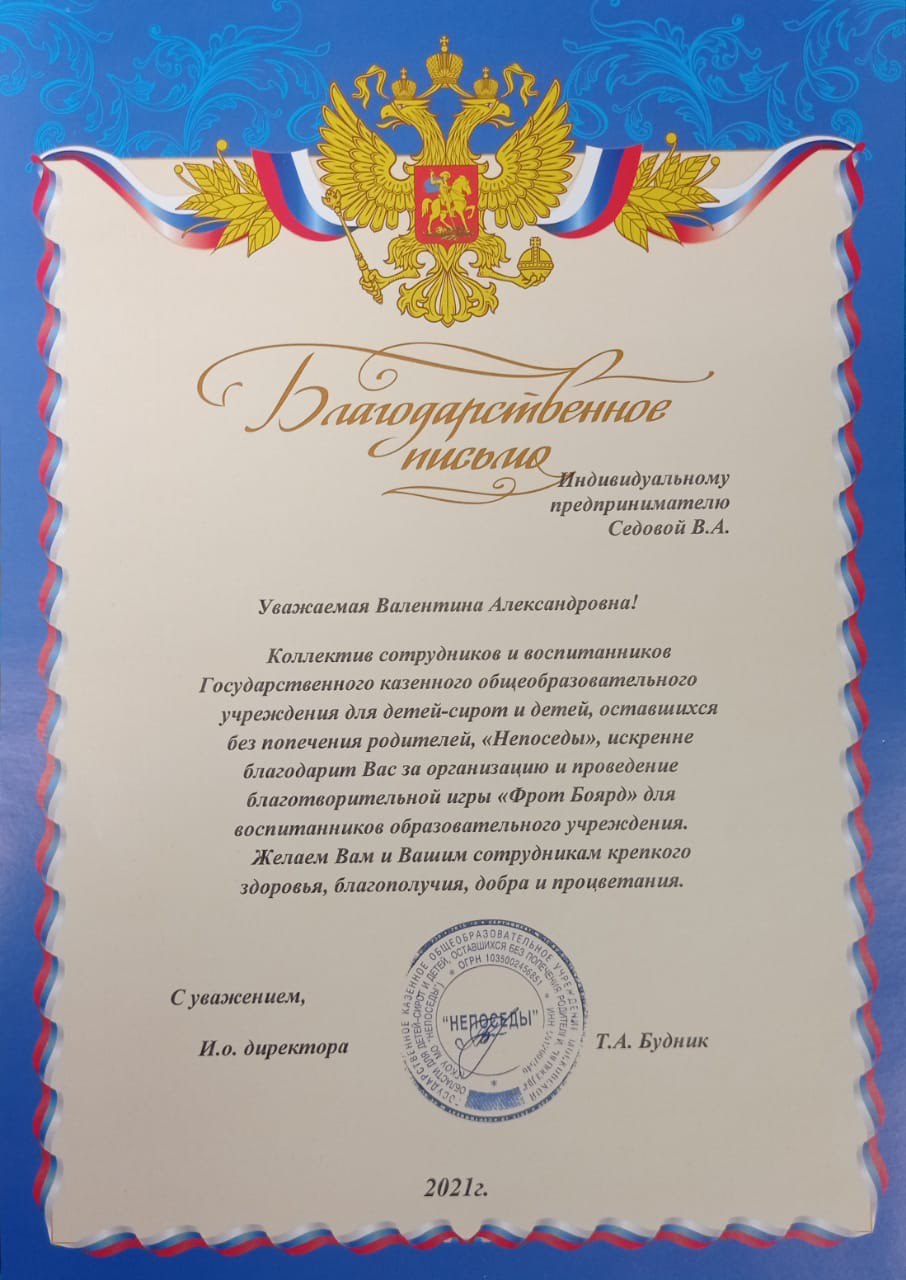 Индивидуальный предприниматель: Седова Валентина Александровна